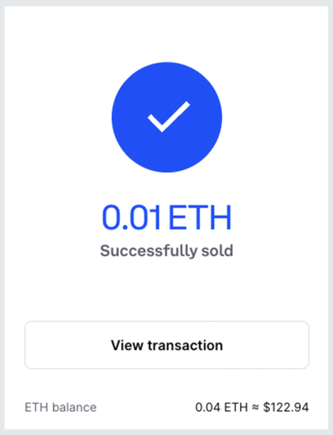 시간이 지나면 ETH를 다른 통화로 교환할 수 있는 Coinbase 계정의 자금이 표시됩니다.