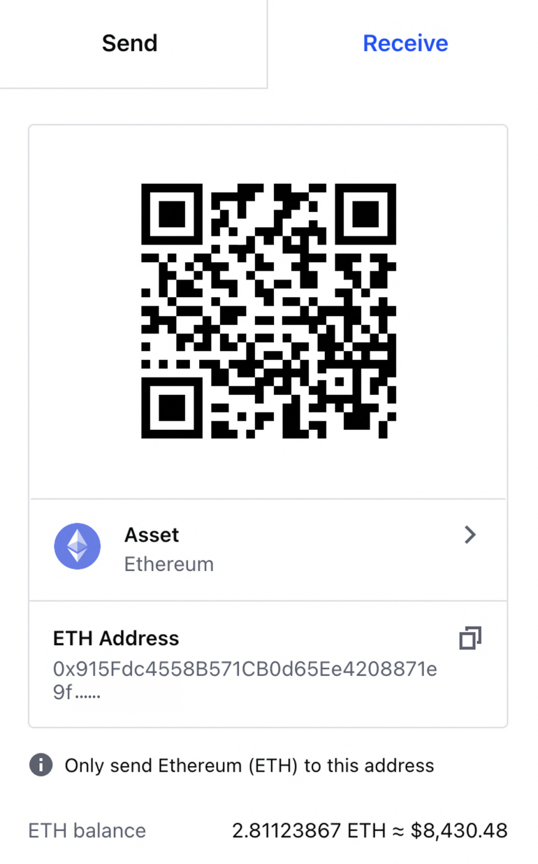 예를 들어, 이 주소는 Coinbase 계정과 연결되어 있기 때문에 오직 ERC-20 토큰인 이더리움만 사용해야 합니다.