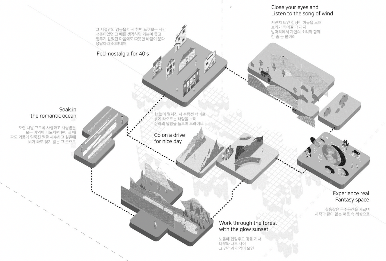 We plan to design space full of objects they use by creating virtual characters in groups.