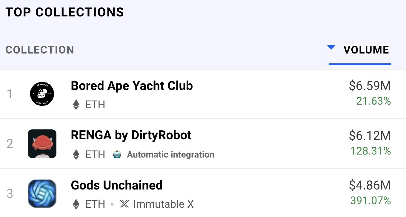 Bored Ape Yacht Club , RENGA by DirtyRobot 및 Gods Unchained 가 있으며,